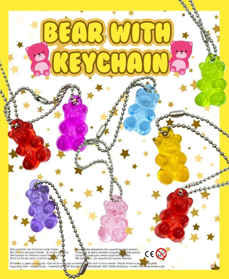 35mm Gevulde Capsule Bear with keychain 100 stuks. (0.23 per stuk ex btw)