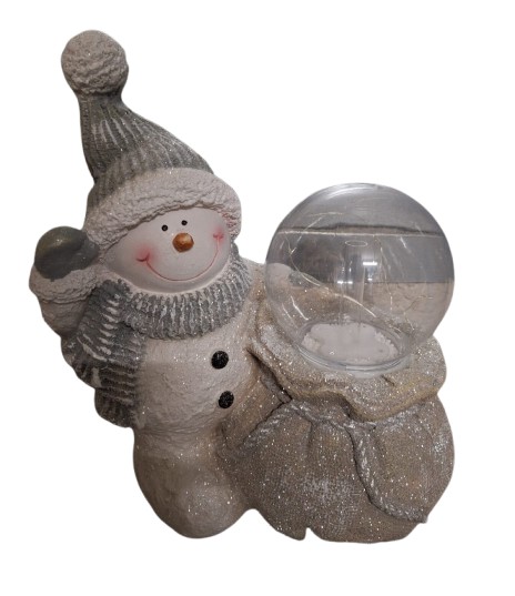 Sneeuwman met zak en bol verlichting 40cm hoog