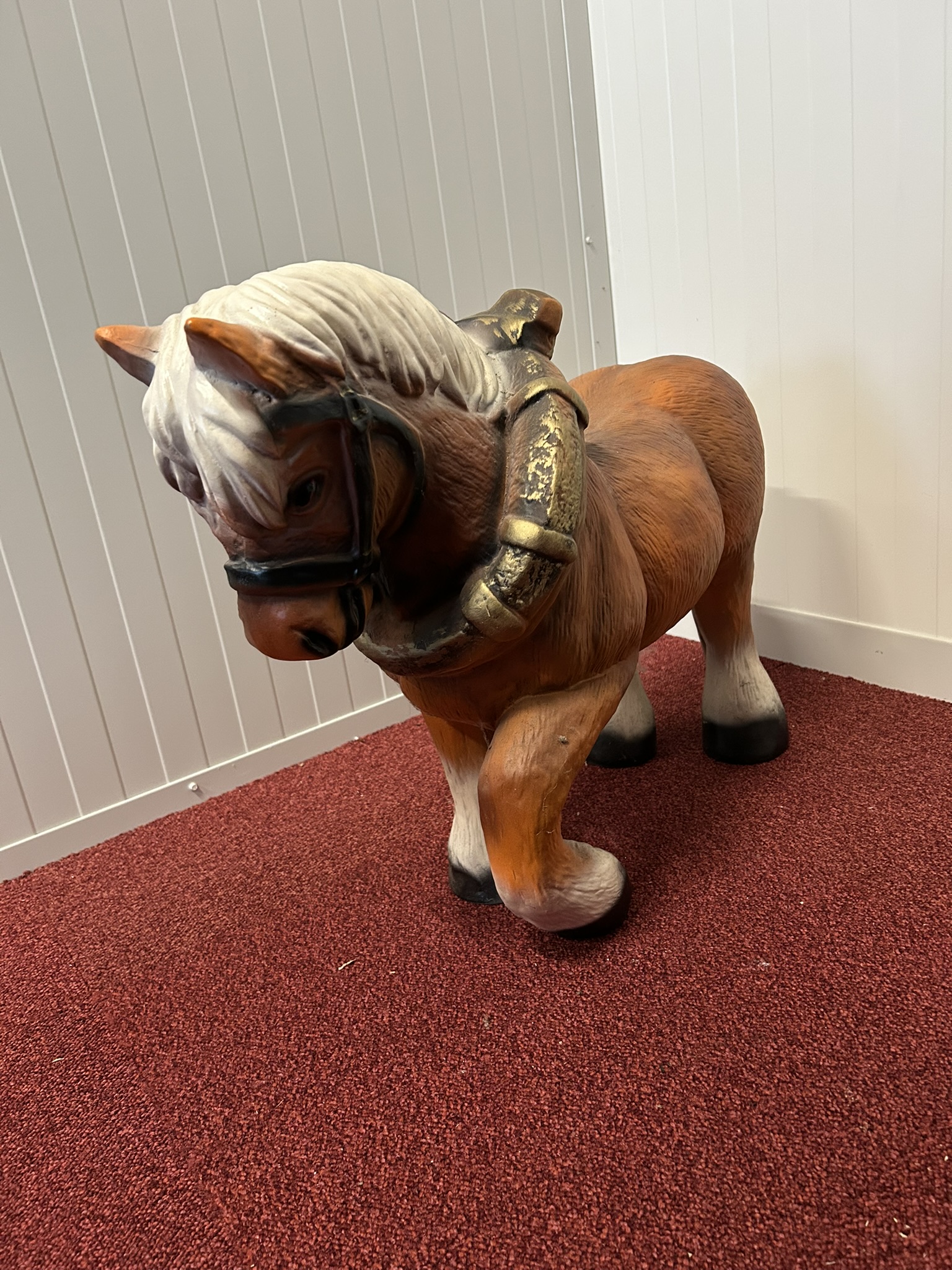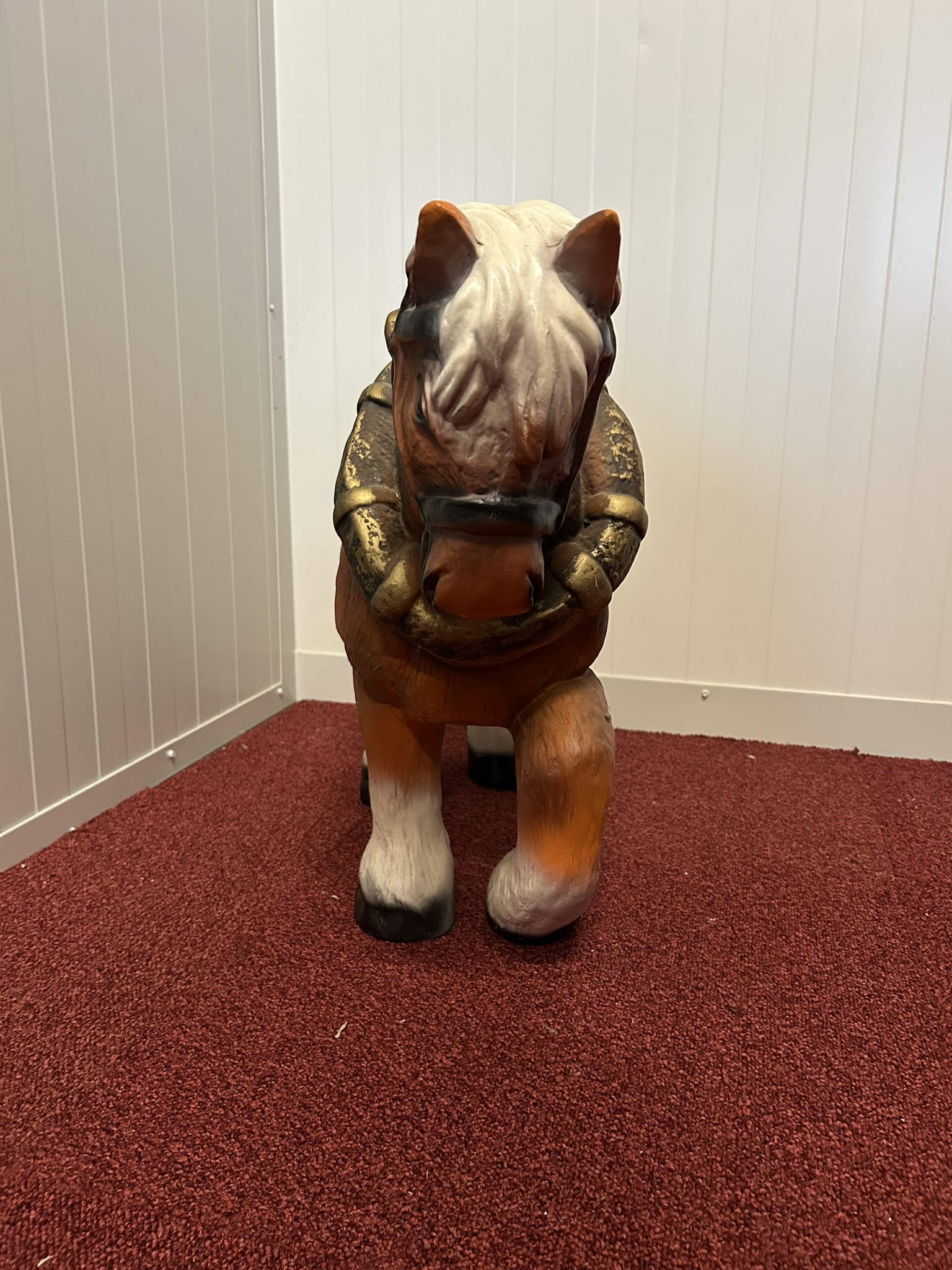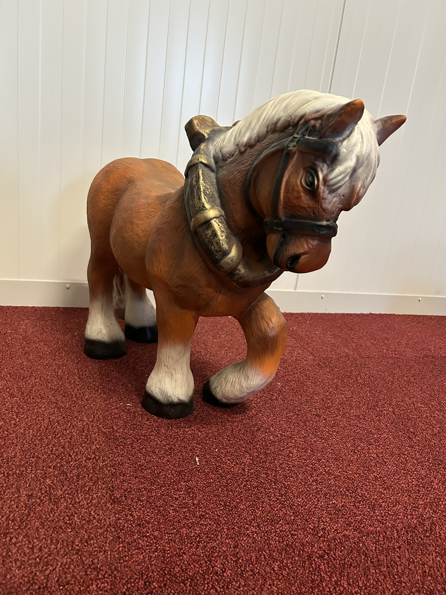 Mooi gedetailleerd trekpaard kleur bruin De afmetingen zijn: h52cm, b23cm, d70cm, Ook verkrijgbaar in de kleur zwart Af te halen in Oude Pekela, verzenden op aanvraag